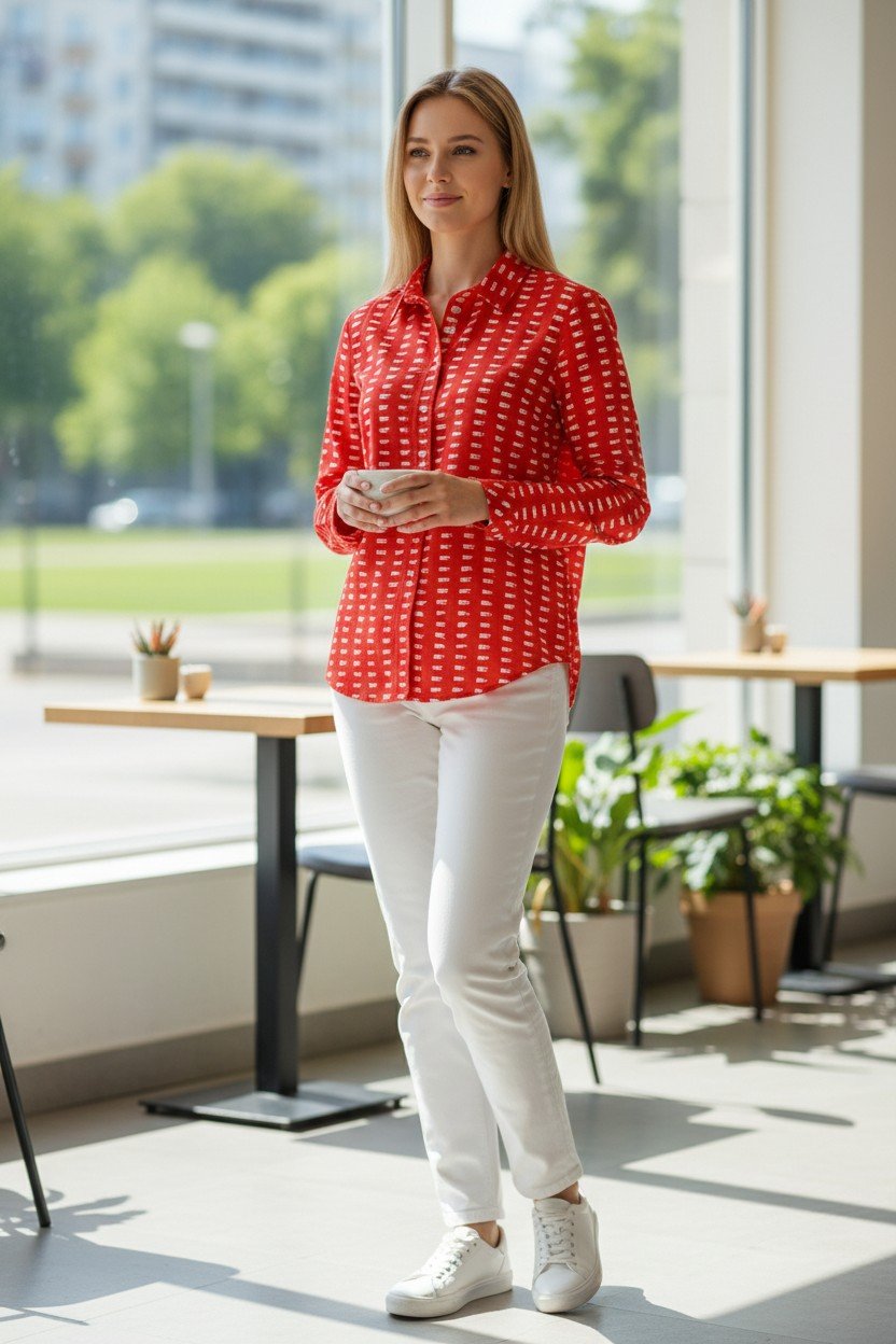 Orange Women’s Shirt with Beige Pattern – Casual Chic Everyday Top