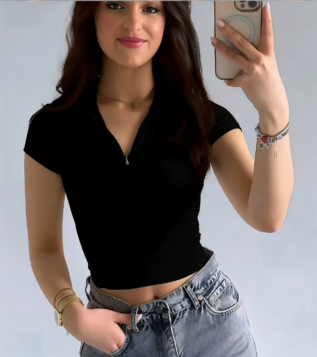 black v neck top features a versatile design that combines everyday comfort with a touch of modern sophistication. This essential piece offers a flattering neckline and a soft feel, making it the perfect foundation for any stylish wardrobe.