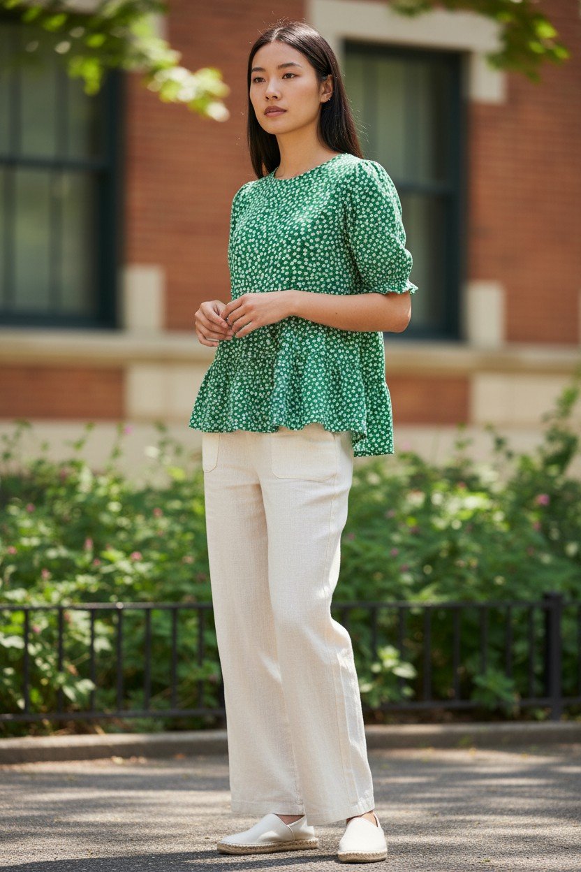 Green Dress with White Polka Dots