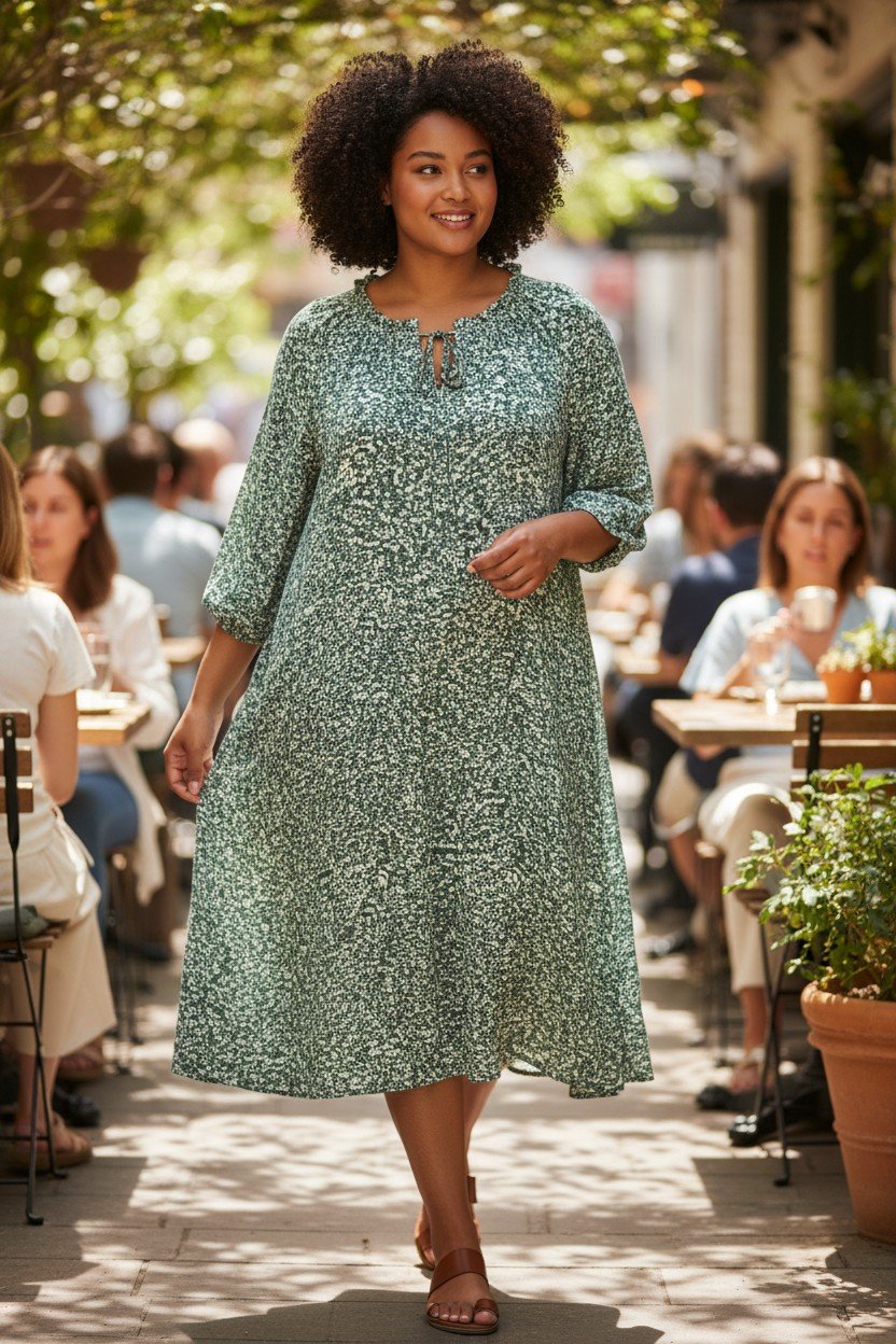 Loose polka dot dress with sleeves